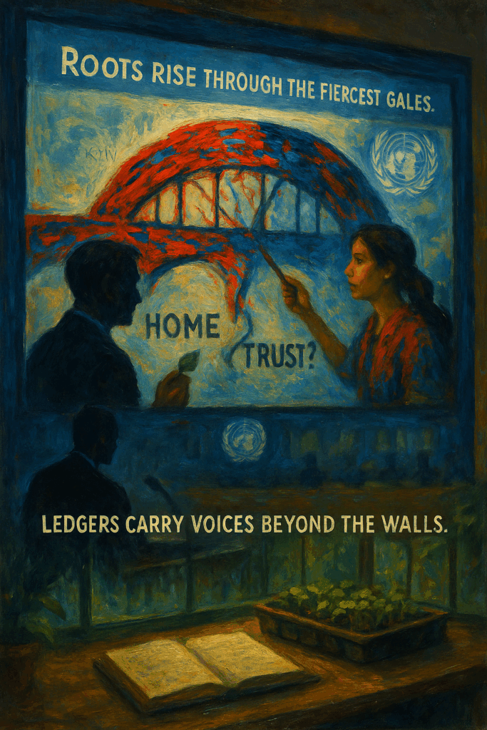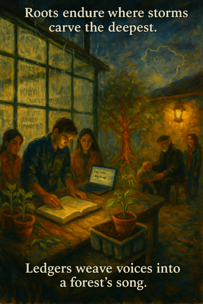 The morning after the river froze and spoke in silence, Emil woke before dawn. The greenhouse smelled faintly of earth and metal, the last traces of winter clinging to its corners. The ledger lay open beside his packed bag, its final line—You do not build the river; you remember where it ran—gleaming softly in the […]