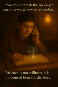 “The river,” Grandfather said gently, “does not argue with stone—it learns the shape of its resistance. You are not there to break the rocks, Emil. You are there to teach the water how to remember.”