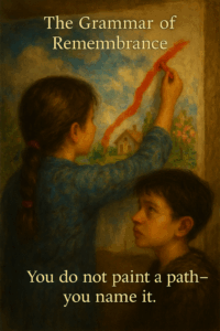 He thought of Danylo’s crimson path, now winding past the fragments of old drawings — connecting what was broken without forcing it whole.