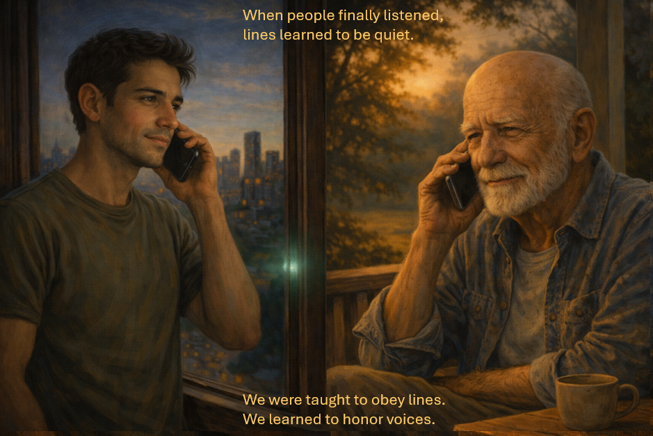 Date:July 2030 Location: Emil’s Brooklyn apartment • Grandfather Thomas’s porch The call came just as the sun finished sliding behind the city. Emil had been watching the border feed again — the one where a guard knelt to tie a child’s shoe instead of checking a passport. He answered on the first ring. “Hey, Grandpa.” […]